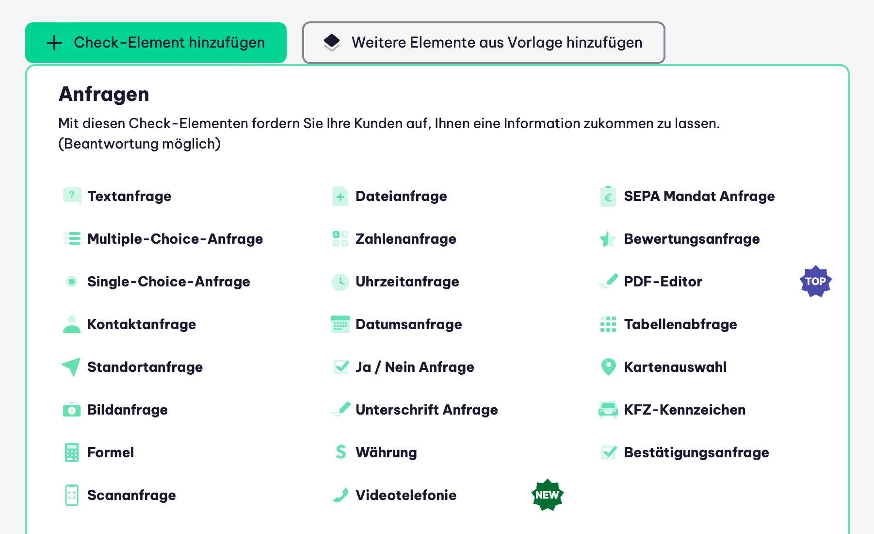 Über das Baukastensystem kann mit Flixcheck nahezu jeder Use Case im Bereich der digitalen Kundenkommunikation realisiert werden. Für viele dieser Prozesse existieren bereits Vorlagen, die mit wenigen Klicks direkt genutzt werden können.